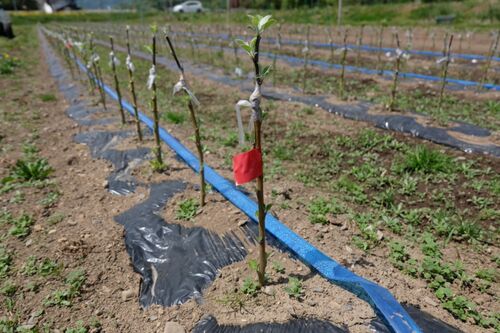 苗畑の様子。 リンゴの花も盛りを過ぎて、気温もグングン上がり、摘花やその他圃場管理に忙しく動き回っています。 昨夜遅くから12日ぶりの雨が降り、乾燥しきっていた畑には恵の雨となりました。 苗は順調に育ってくれています。只今芽の大きさは早いもの…