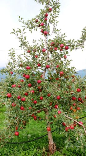 今朝の紅玉。美しい赤色に染まってきました。 同じ系統の紅玉を栽培しているつもりだったのですが、樹体ごとに着色の程度に結構差が出ていますね。優良な枝には印をつけて置いて選抜して増やしたりもします。 収穫期はただ果実を採るだけではなく、他の枝や…