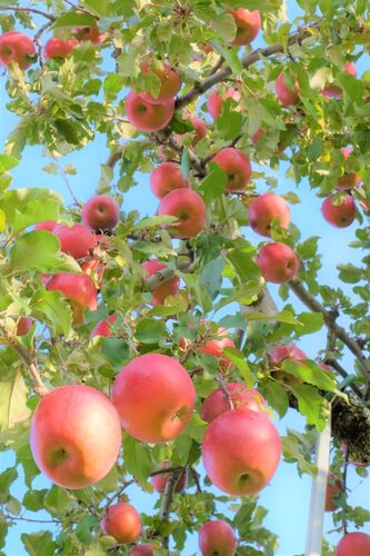 ふじの古木。何度も吹いた強風のため、傷リンゴは例年に比べかなり多いですが、無事なリンゴを丁寧に収穫して何とか乗り切りたい。