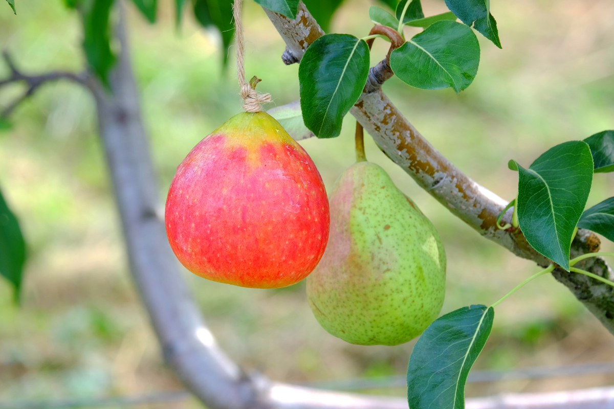 洋なしのような形のシナノリップ(りんご)と洋なし。ここまで洋ナシっぽい形のシナノリップは今年はこの1個だけ。